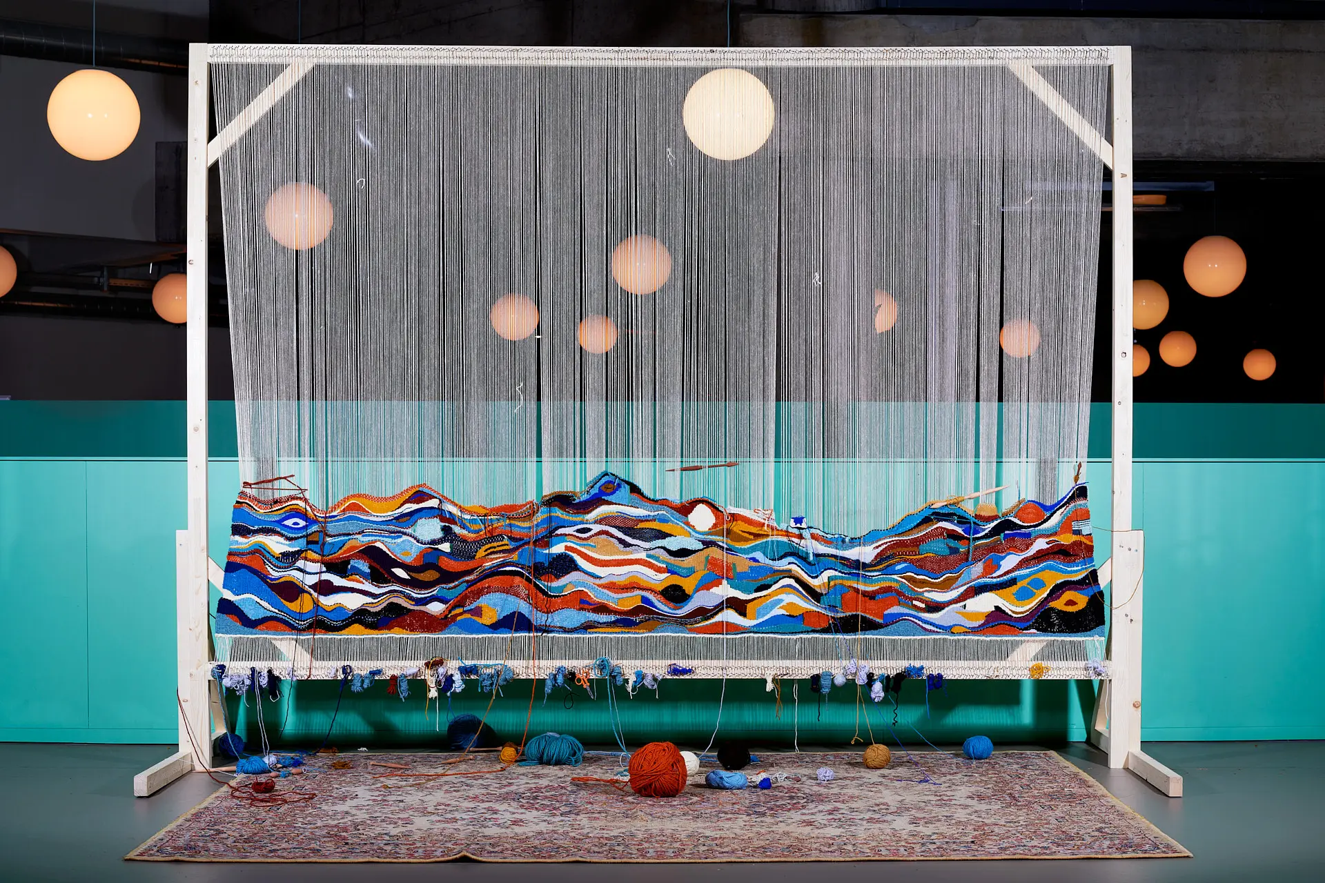 The pieces evoke both Lake Geneva and the Atlantic glimpsed from his native Portugal, drawing on the depth of blue and the moving surface of water. By integrating adolescent texts, Marques frames a gentle choreography where line becomes migration and memory is rendered as drawing.