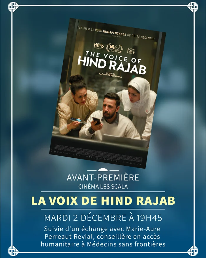 Join us for the premiere of the powerful film “The Voice of Hind Rajab,” directed by Kaouther Ben Hania. This poignant story follows a six-year-old girl trapped in a car amidst gunfire in Gaza, desperately calling for help. The film will be shown in its original Arabic with French and English subtitles, followed by a discussion with Marie-Aure Perreaut Revial from Médecins sans frontières.