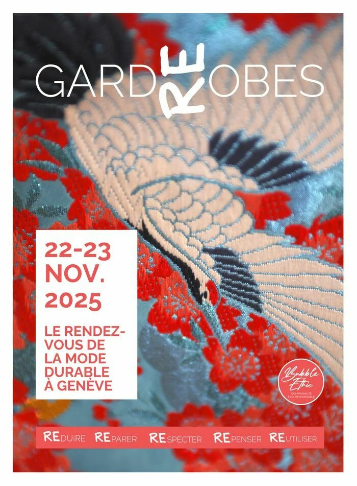 GARDEROBES, Geneva’s key event on sustainable fashion, offers a weekend dedicated to ethical practices and creativity. The program includes stands with committed designers, workshops, a sewing repair café, an ethical fashion show, a clothing swap, and an eco-market. Visitors can also attend a conference on sustainable fashion, discover an exhibition on the art of the kimono, explore initiatives raising awareness about fast fashion, and view a school art competition around the theme of the kimono.