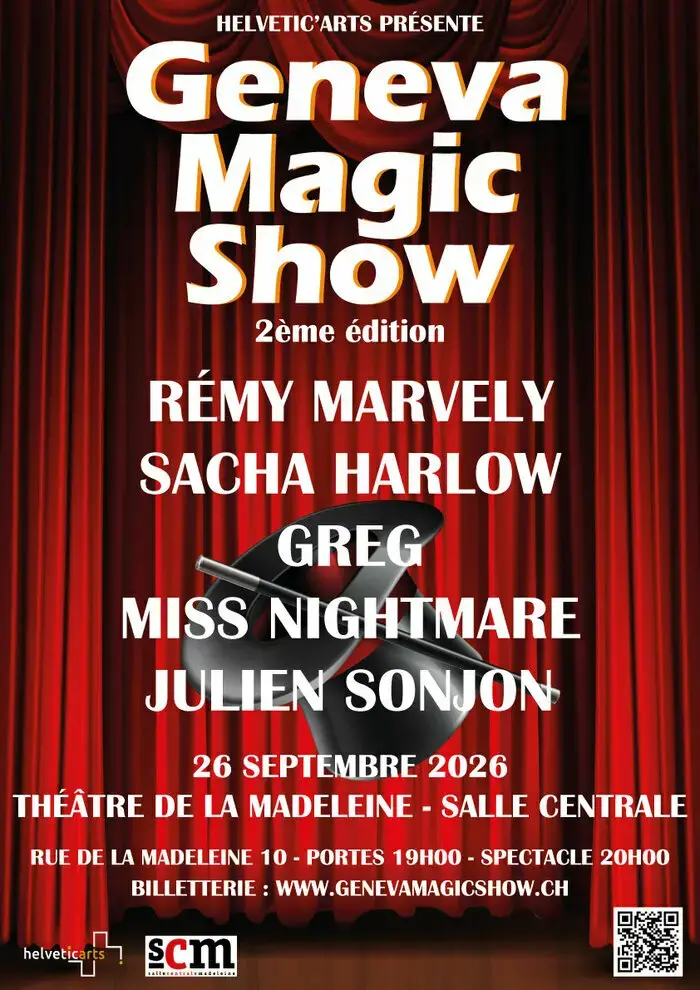{"title":"Geneva Magic Show","description":"Be amazed by five magicians with very different styles. Miss Nightmare, Sacha Harlow, R\u00e9my Marvely, Julien Sonjon and Greg will make you laugh, dream and question your own eyes. Watch quick hands, dramatic gestures and flashes of color. Feel the rhythm of music, the hush before a trick, and the surprise when something impossible appears. This lively show sparks curiosity, imagination and daring.\r\n\r\n\u003Cstrong\u003EIn French.\u003C\/strong\u003E \u003Cstrong\u003EKids ages 8 and up.\u003C\/strong\u003E","start_date":"2026-09-26","end_date":"2026-09-27","date":"Saturday 26 September, 20:00","timings":[{"timing_start_date":"20260926T200000Z","timing_end_date":"20260926T220000Z"}]}