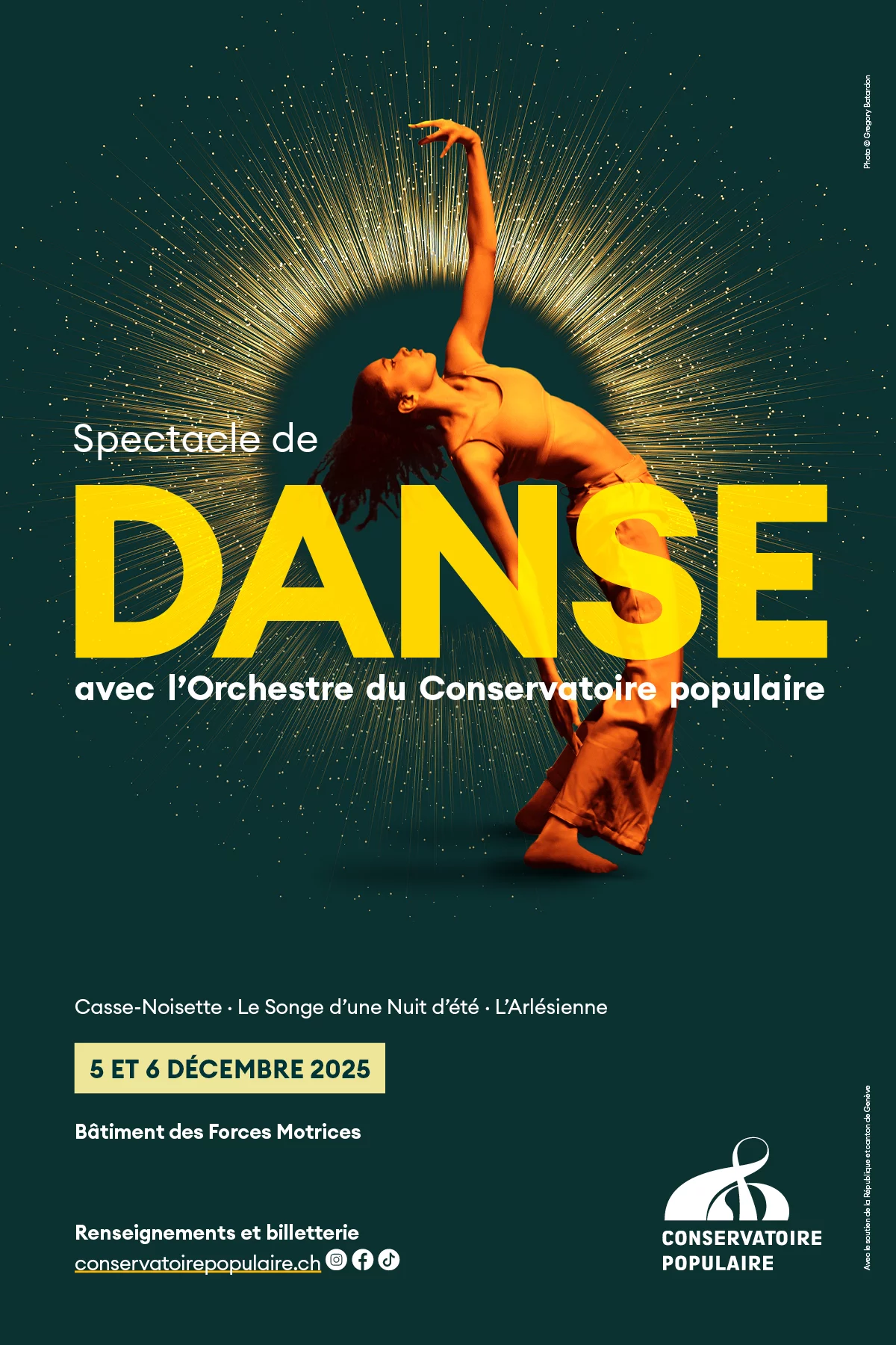 From December 5 to 6, 2025, just before the holiday season, the Conservatoire Populaire of Music, Dance and Theatre invites you to the Bâtiment des Forces Motrices (BFM) in Geneva for its grand biennial dance show. Across three exceptional performances, audiences will experience a rich choreographic journey blending poetry, energy, and artistic diversity—from classical and contemporary to modern jazz. The first part features a live collaboration with the Conservatoire’s symphony orchestra performing works by Tchaikovsky, Mendelssohn, and Bizet, while the second part showcases original choreographies set to recorded music, highlighting modernity and emotion. On both evenings, a free prelude in the BFM foyer will be presented by visually impaired students from the unique “Danse des sens” program, emphasizing the Conservatoire’s commitment to inclusive artistic expression. Join us in celebrating the power and beauty of dance in the heart of Geneva.