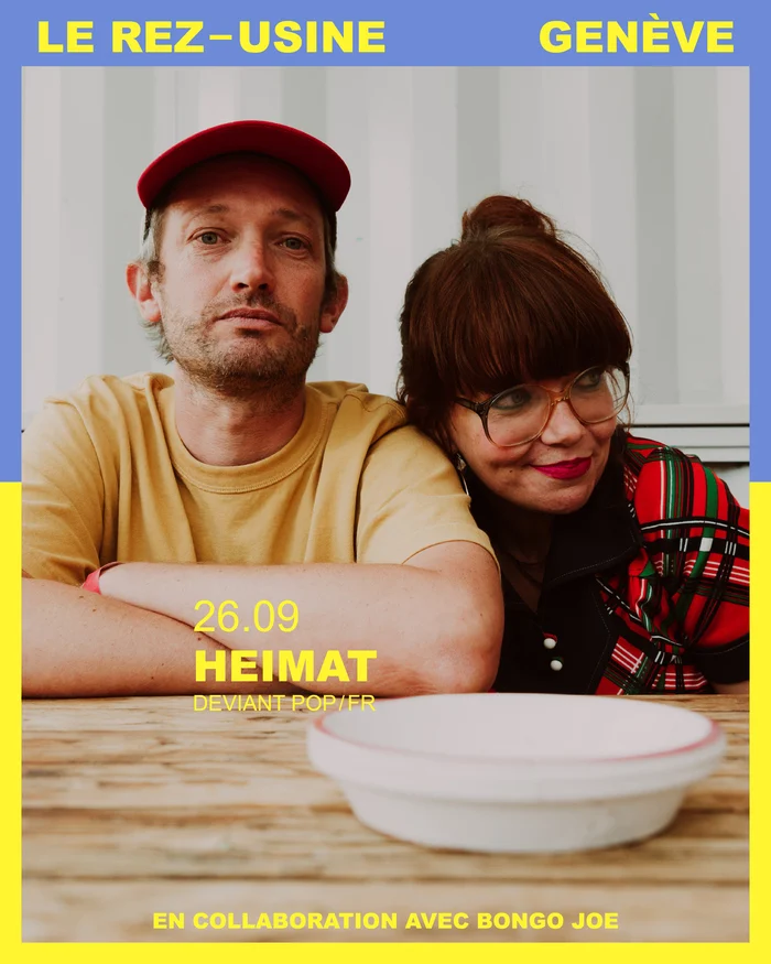 Heimat, a deviant pop group, will perform at Bongo Joe in collaboration with Rez-Usine. The duo, featuring Olivier Demeaux and Armelle Oberle, is renowned for their unique blend of new wave, trap music, and ethnographic recordings from Southeast Asia. Their third album, “Iti eta no,” released in March 2025, features cover art by Anouk Ricard.