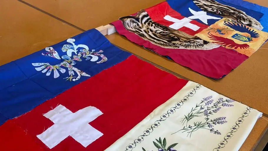 Artist Maëva Weissen presents a collaborative exhibition of handmade flags created by pupils and apprentices from the DIP through guided creative workshops. Using recovered textiles and artisanal techniques, the works interrogate national symbols, folklore and textile know‑how to probe questions of Swiss identity and its coexistence with multiple cultural roots in Geneva. The pieces combine textile craft, assemblage and photography to reflect on adolescence, belonging and the environmental footprint of the fashion industry.