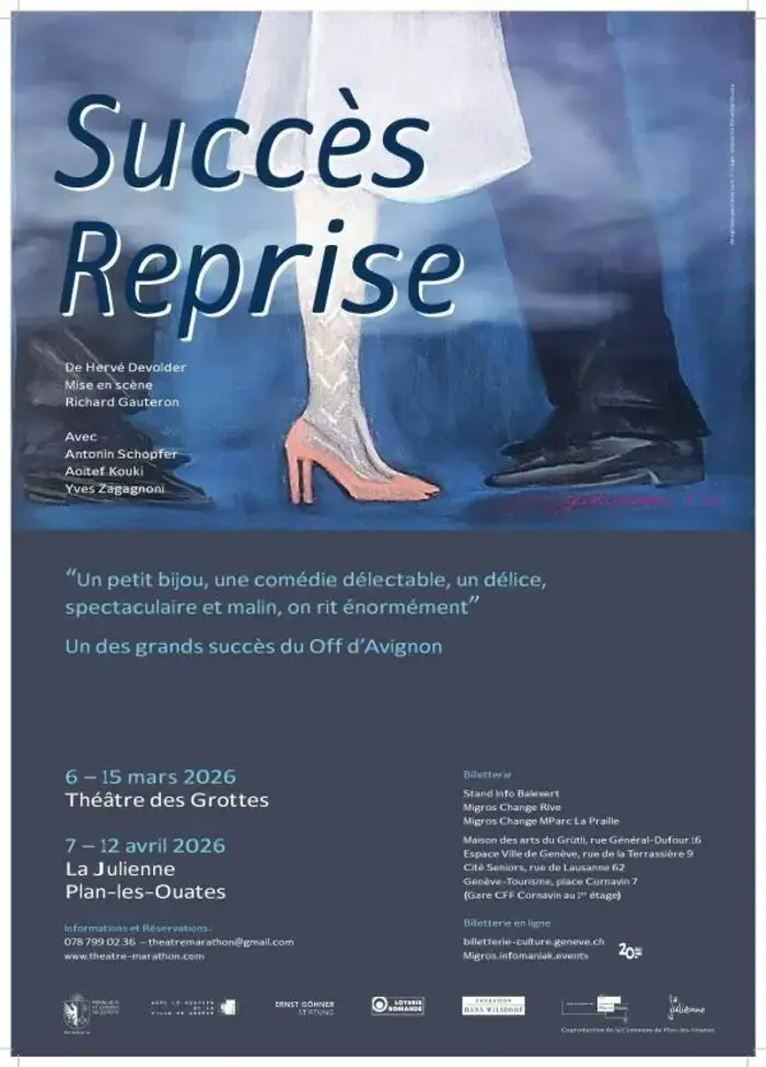 Succès Reprise is a sparkling vaudeville that blurs the line between theatrical comedy and the comedy of everyday life. A charming love triangle performed by a tight trio of actors unfolds through rapid-fire exchanges, physical gags and shifting misunderstandings. The staging favours bright pace and playful timing, delivering light-hearted warmth while revealing awkward human impulses and social foibles. The piece leaves a lingering smile and a sense of affectionate irony.