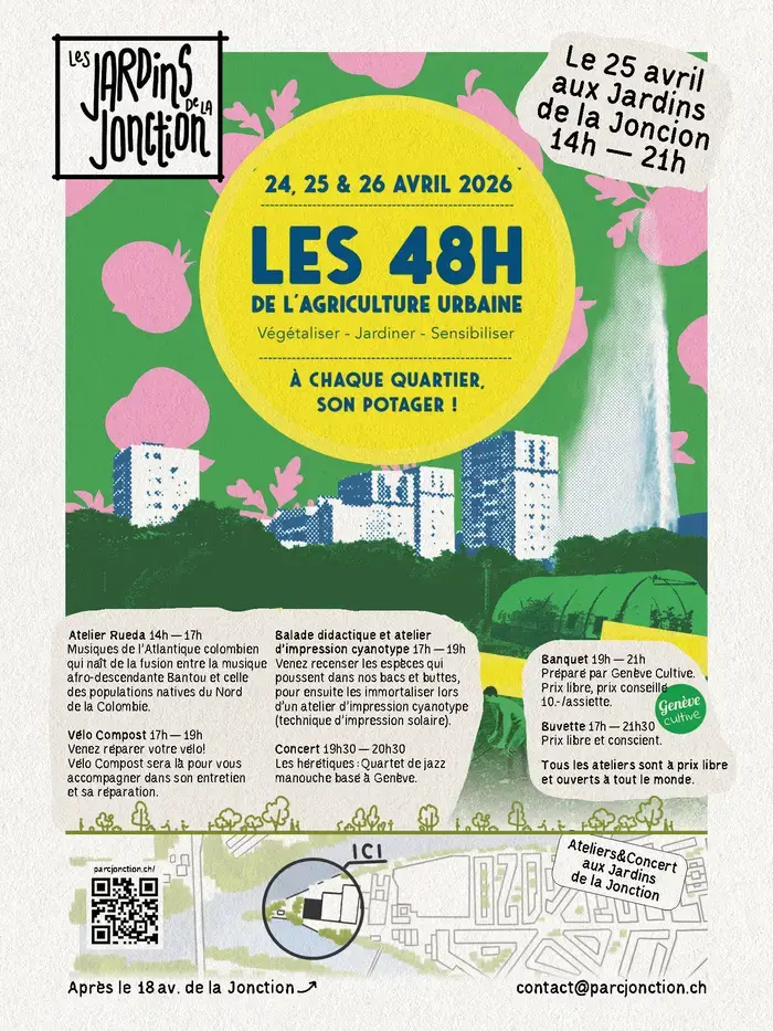 Une journée dédiée à l’agriculture urbaine, mêlant ateliers pratiques, musique et échanges collectifs autour du lien au sol et aux savoir-faire partagés. Le programme propose une initiation Rueda illustrant les traditions afro-colombiennes côtières, des sessions de réparation vélo pour promouvoir la mobilité durable, une balade naturaliste suivie d’un atelier d’impression cyanotype, un concert de jazz manouche et un banquet partagé. L’événement explore comment les pratiques collectives renforcent la résilience alimentaire et la biodiversité locale.