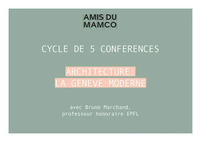 Bruno Marchand, professeur honoraire à l’EPFL, dirige ce cycle de cinq conférences destiné aux néophytes en histoire de l’architecture. Il apporte son expertise académique pour présenter des figures clés et des approches de la modernité genevoise au XXe siècle.
