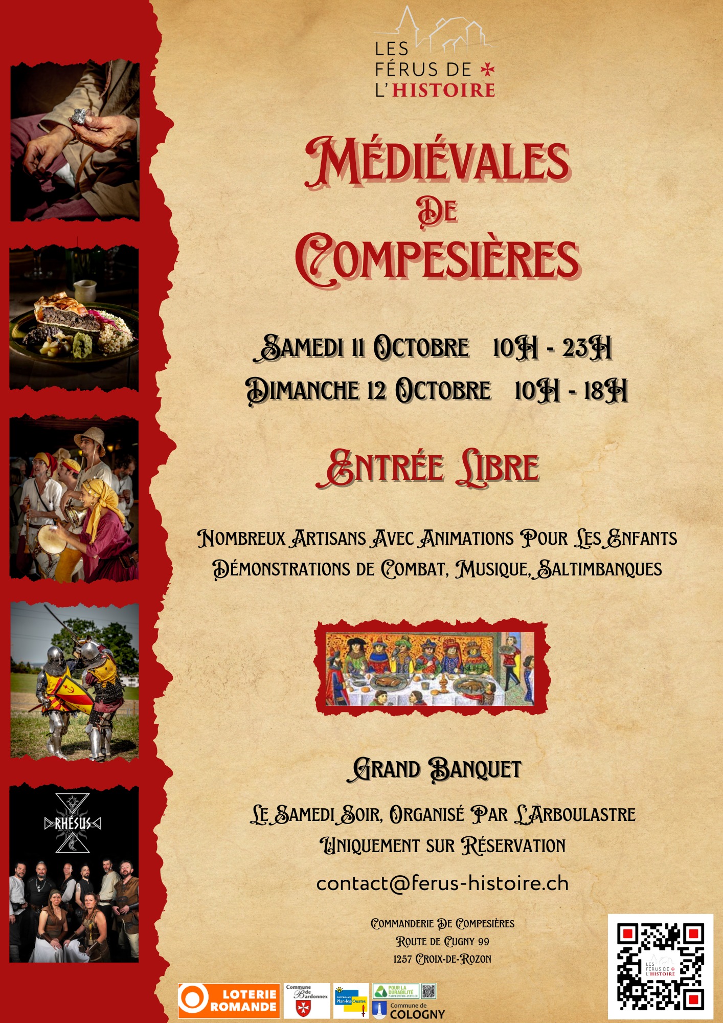 Les Médiévales de Compesières vous proposent un week-end hors du temps, au cœur du Moyen Âge. Au programme : troubadours, jongleurs, artisans, campements vikings, combats de chevaliers, banquet médiéval, musique live et spectacles de feu. Avec des animations pour toute la famille, restauration et taverne sur place, cette cinquième édition promet une expérience médiévale vivante et inoubliable